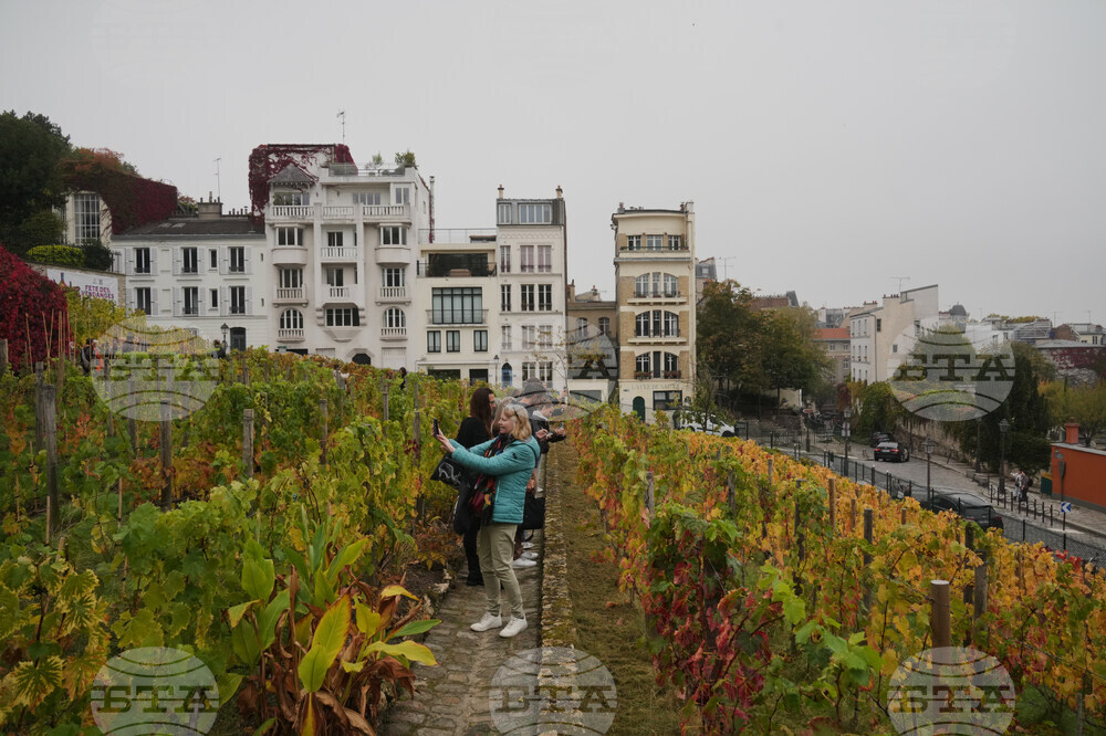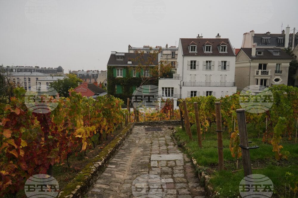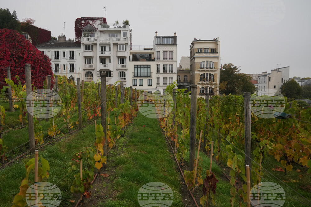 People visit the vineyards of Montmartre district, in Paris, Wednesday, Oct. 8, 2025. (AP Photo/Thibault Camus)