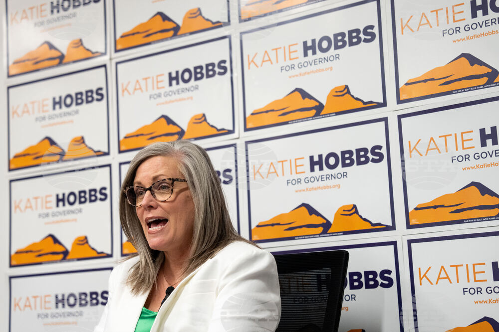 Democratic Arizona Gov. Katie Hobbs speaks during an interview with The Associated Press, Tuesday, Oct. 7, 2025, in Phoenix. (AP Photo/Samantha Chow)