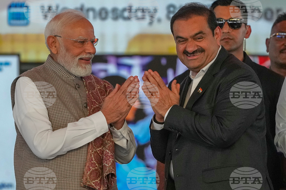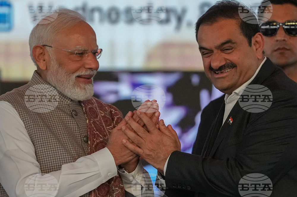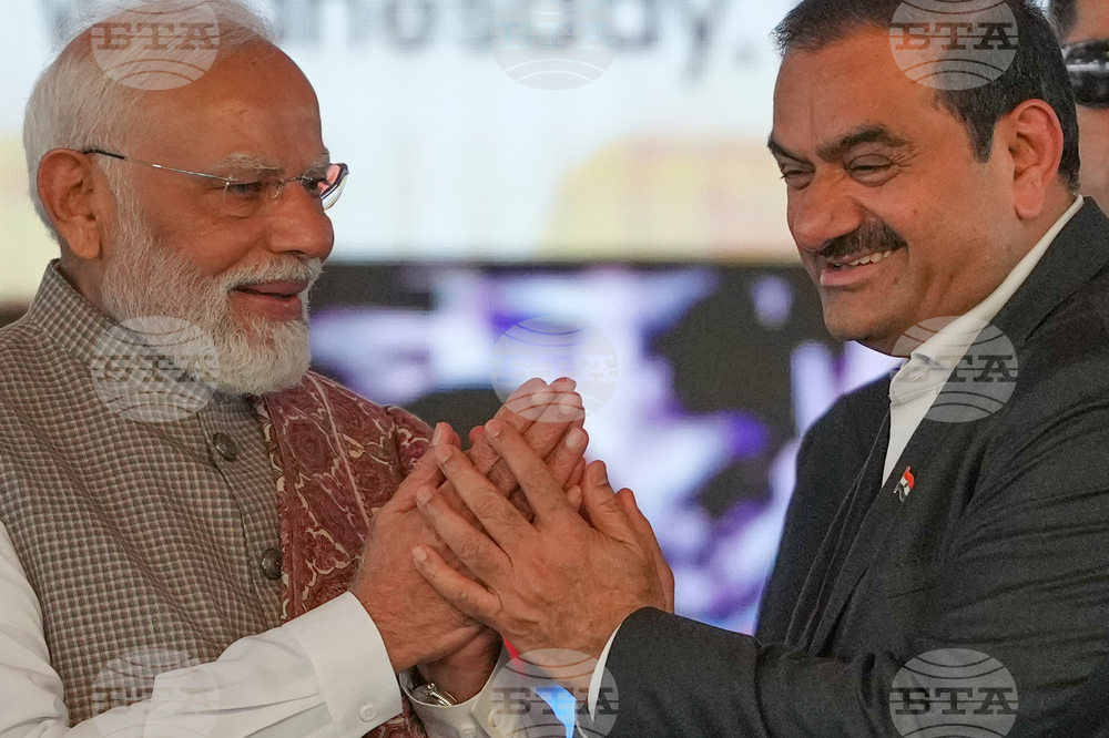 Indian Prime Minister Narendra Modi, left, greets Chairman Adani Group, Gautam Adani during the inauguration ceremony of the Navi Mumbai International Airport in Navi Mumbai, India, Wednesday, Oct. 8, 2025. (AP Photo/Rafiq Maqbool)