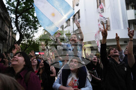 Supporters of former President Cristina Fernandez wave to her outside of her home, where she is serving a six-year house arrest sentence for corruption in Buenos Aires, Argentina, Wednesday, Oct. 8, 2025. (AP Photo/Rodrigo Abd)