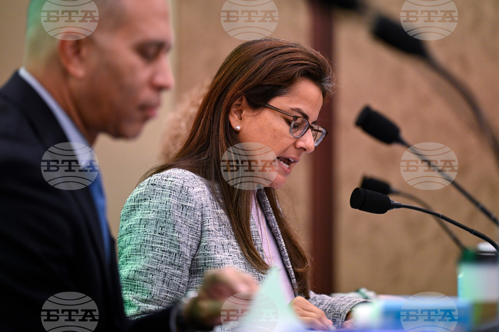 Co-chair Rep. Nanette Barragan, D-Calif., of the House Democratic Steering and Policy Committee, reads her opening statement during a hearing on healthcare at the U.S. Capitol Wednesday, Oct. 8, 2025, in Washington. (AP Photo/John McDonnell)
