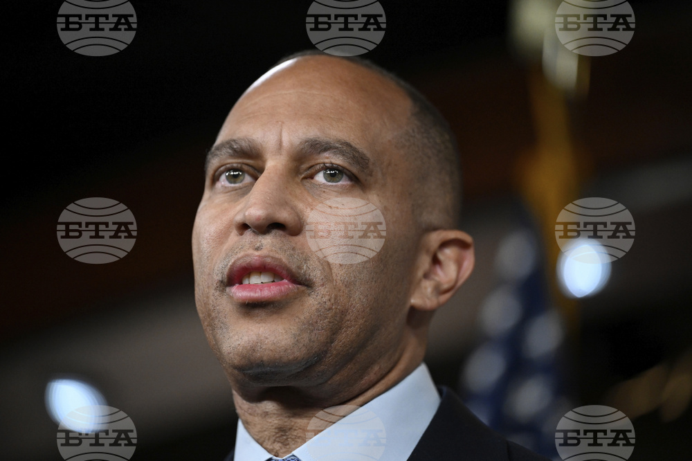 House Minority Leader Hakeem Jeffries, D-N.Y., speaks during a news conference on the 8th day of a government shutdown at the U.S. Capitol on Wednesday, Oct. 8, 2025, in Washington. (AP Photo/John McDonnell)