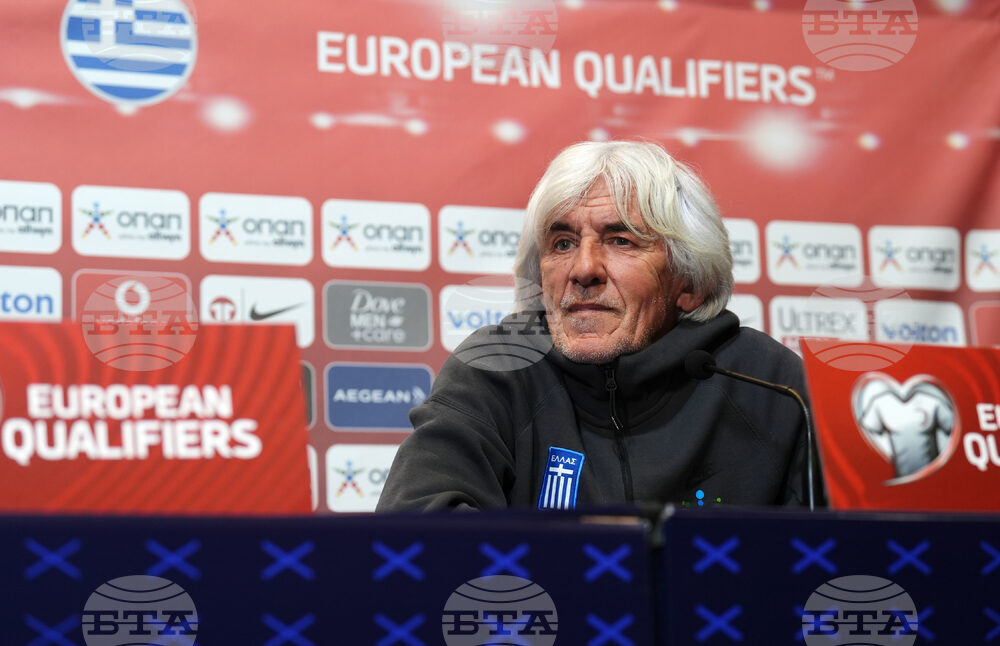 Greece manager Ivan Jovanovic during a press conference at Hampden Park, Glasgow, Scotland, Wednesday, Oct. 8, 2025. (Andrew Milligan/PA via AP)