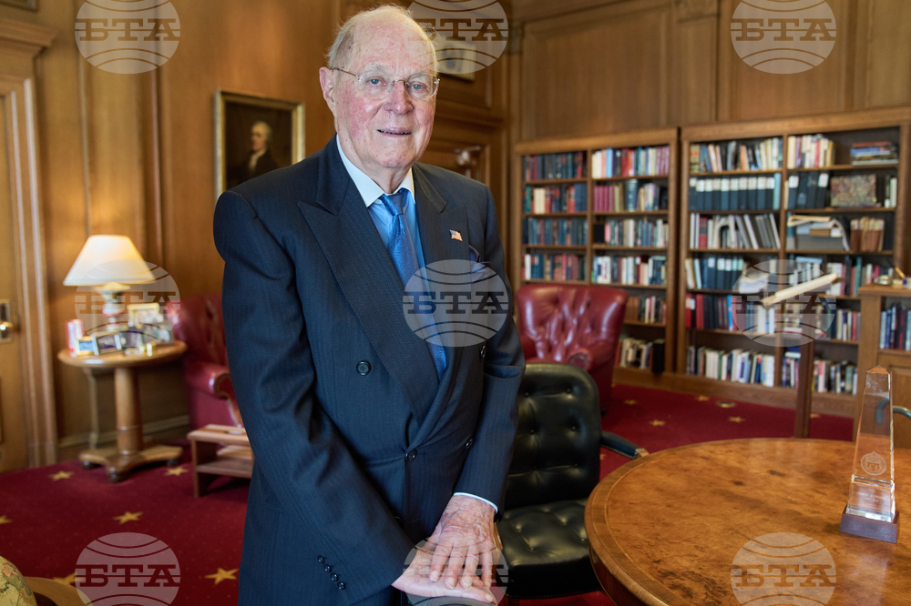 Retired Supreme Court Justice Anthony Kennedy, 88, sits down for an interview with The Associated Press, Wednesday, Oct. 8, 2025, in his office at the Supreme Court in Washington. (AP Photo/Jacquelyn Martin)