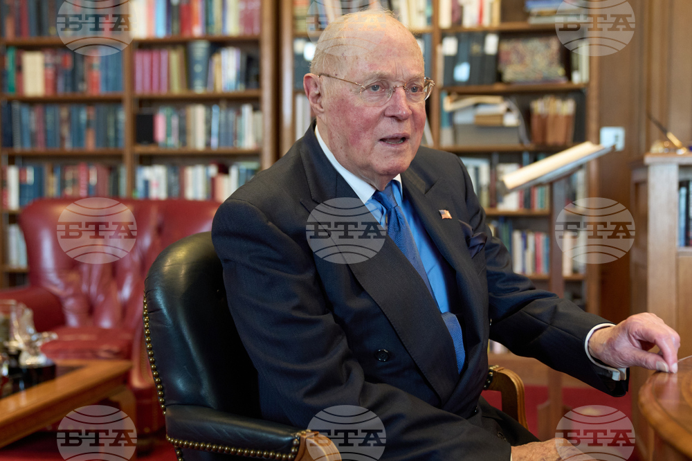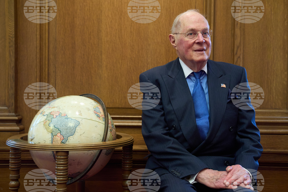 Retired Supreme Court Justice Anthony Kennedy sits down for an interview with The Associated Press, Wednesday, Oct. 8, 2025, in his office at the Supreme Court in Washington. (AP Photo/Jacquelyn Martin)