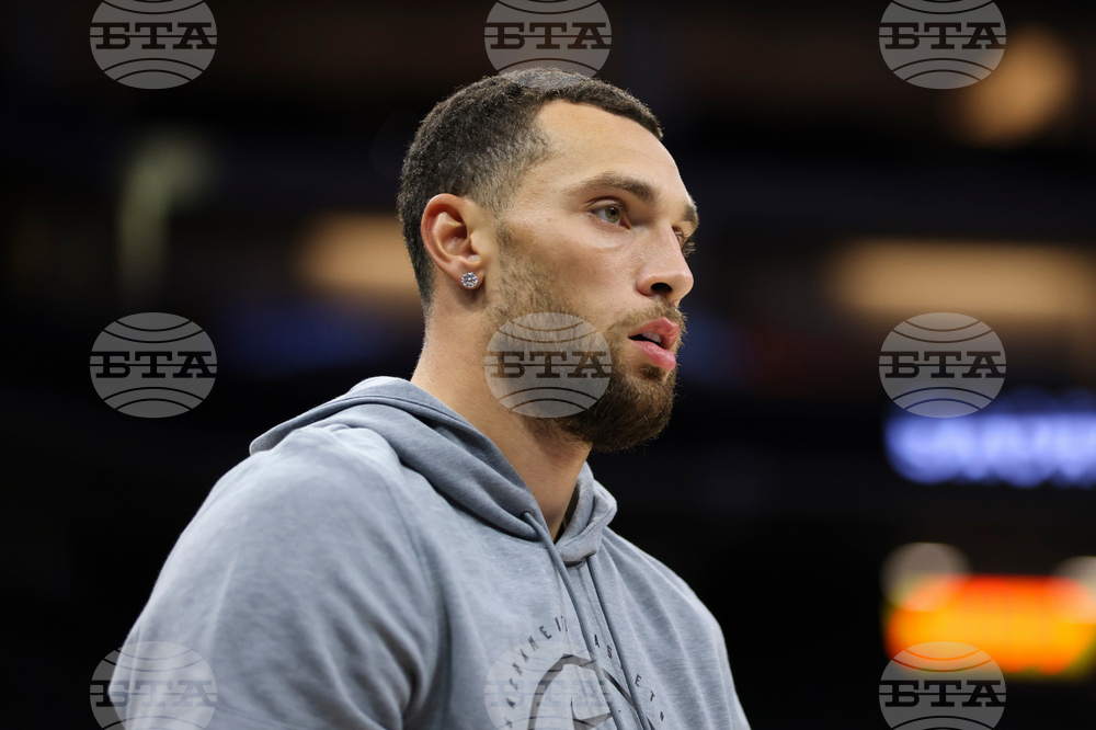 Sacramento Kings guard Zach LaVine looks on during warms up of an NBA basketball preseason game against the Toronto Raptors, Wednesday, Oct. 8, 2025, in Sacramento, Calif. (AP Photo/Scott Marshall)