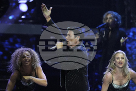 Puerto Rican singer Chayanne performs during his "Bailemos Otra Vez" tour in Mexico City, Wednesday, Oct. 8, 2025. (AP Photo/Claudia Rosel)