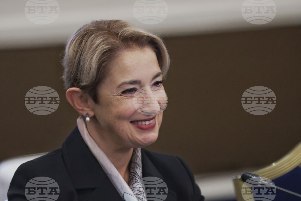 София (9 октомври 2025) В хотел „София Балкан Палас“ Асоциацията на индустриалния капитал в България (АИКБ), съвместно с Министерство на вътрешните работи (МВР), организира експертен форум, посветен на мерките за сигурност при въвеждането на еврото на тема: „Обезпечаване на сигурността на прехода към Еврозоната“. На снимката: заместник-председателят на Народното събрание Николета Кузманова (втората отдясно).