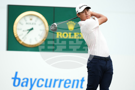 CORRECTS TO THE FIRST HOLE, NOT THE TENTH - Collin Morikawa of the U.S. tees off on the first hole during the first round of the Baycurrent Classic golf tournament at the Yokohama Country Club in Yokohama, near Tokyo, Thursday, Oct. 9, 2025. (AP Photo/Hiro Komae)