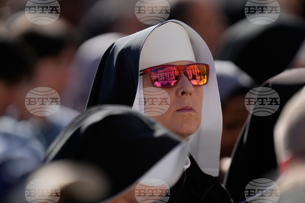 A nun attends a Mass for the participants in the jubilee of ordained people with Pope Leo XIV, in St. Peter's Square, at the Vatican, Thursday, Oct. 9, 2025. (AP Photo/Gregorio Borgia)