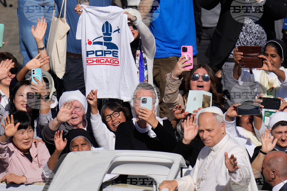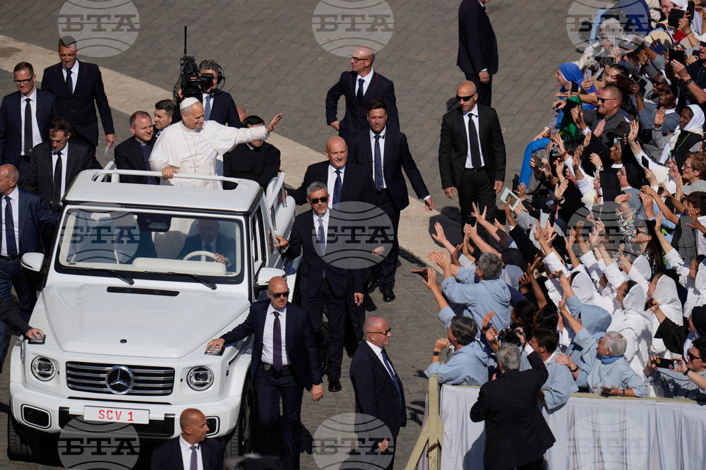 Pope Leo XIV leaves after presiding over a Mass for the participants in the jubilee of ordained people in St. Peter's Square, at the Vatican, Thursday, Oct. 9, 2025. (AP Photo/Gregorio Borgia)