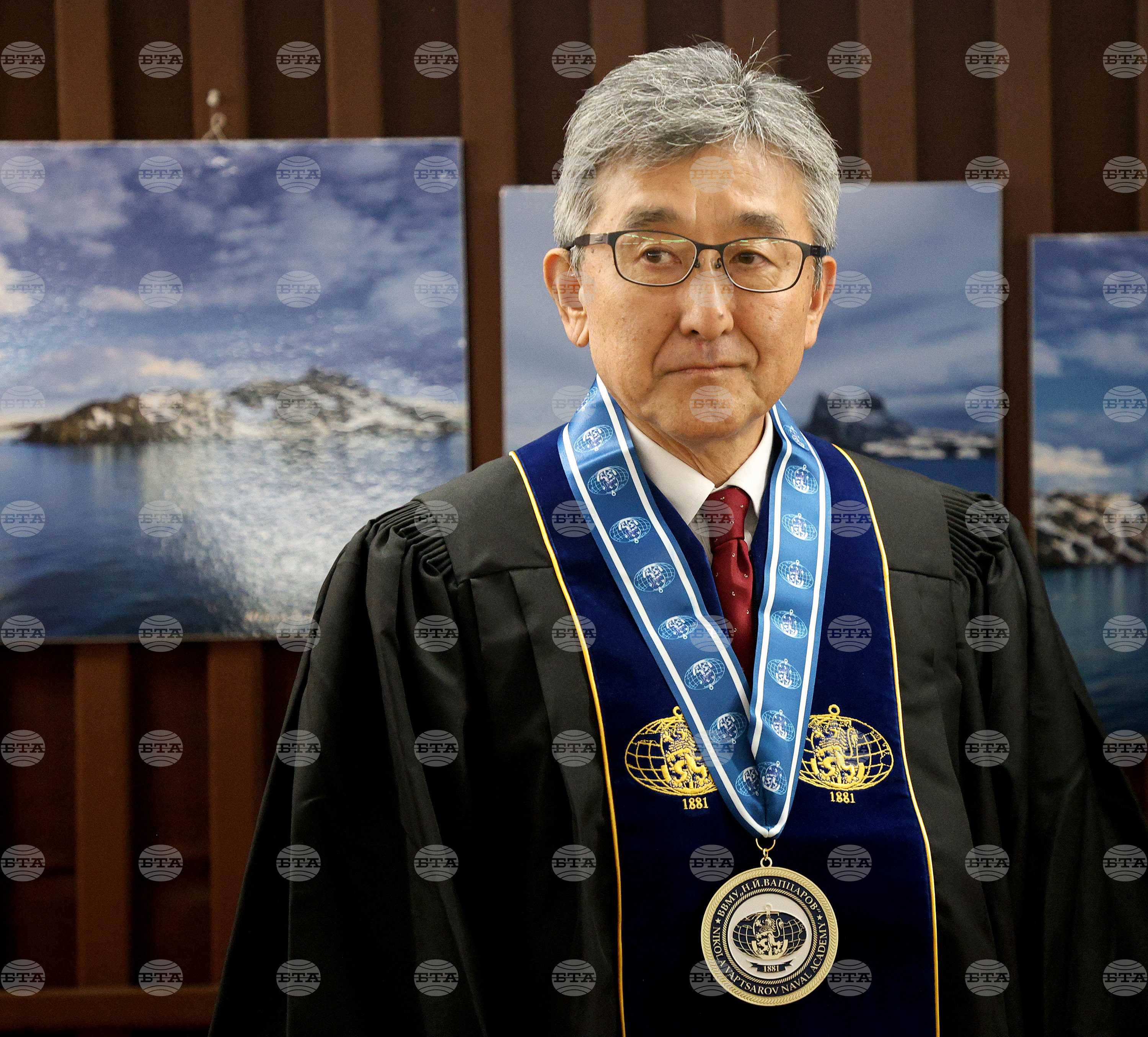 Варна (9 октомври 2025) В Звездната зала на Планетариума във ВВМУ „Н. Й. Вапцаров” се провежда церемония по удостояване с почетно научно звание „Доктор хонорис кауза” на Хирошиге Таниока (на снимката), изпълнителен директор на K line. Отличието връчи началникът на училището флотилен адмирал проф. Калин Калинов. По-късно Хирошиге Таниока посади възпоменателно дърво и участва в откриването на нов кабинет в учебното заведение.