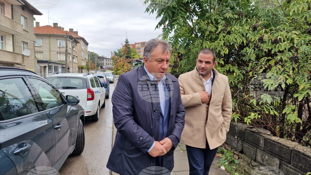 Шумен (9 октомври 2025) Първа копка за реконструкция на канализацията по улица „Тича“ и изграждане на нова улична канализация по улица „Червена стена“ в Шумен. Кметът на община Шумен проф. Христо Христов (вляво), директорът на Дирекция "Устройство на територията" в Община Шумен Нора Чалъкова и представител на фирмата изпълнител дават брифинг на мястото на строителните дейности.