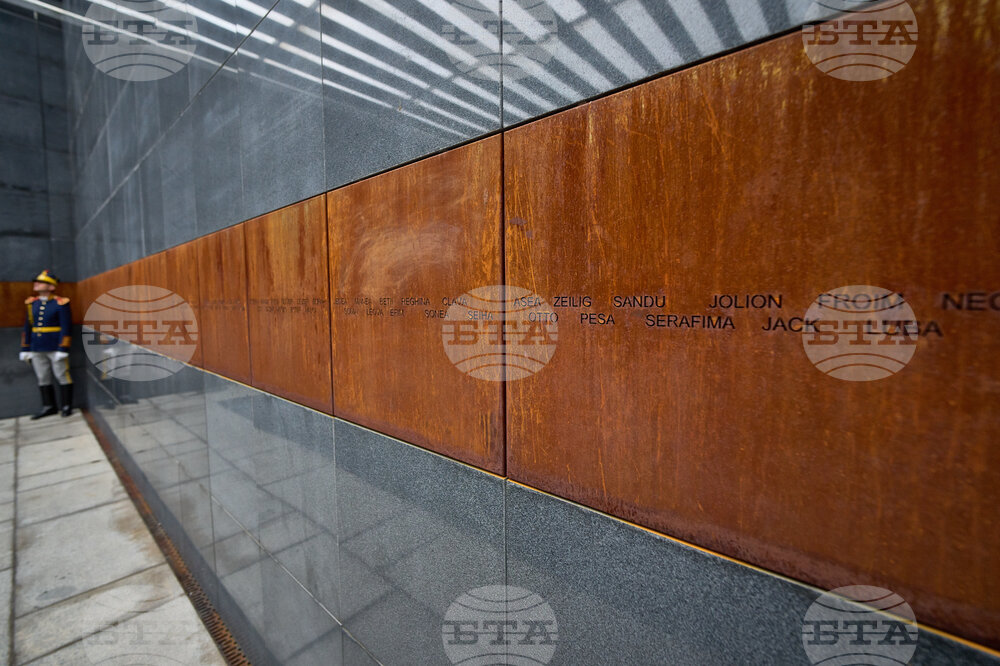 Names of victims are engraved on metal plaques at the Holocaust Memorial during the ceremony marking the National Holocaust Memorial Day in Bucharest, Romania, Thursday, Oct. 9, 2025. (AP Photo/Vadim Ghirda)