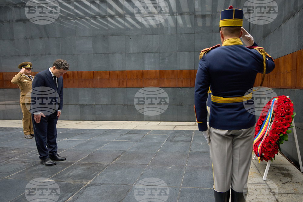 Romanian President Nicusor Dan lays a wreath at the Holocaust Memorial during the ceremony marking the National Holocaust Memorial Day in Bucharest, Romania, Thursday, Oct. 9, 2025. (AP Photo/Vadim Ghirda)