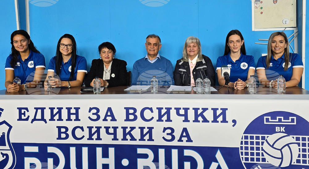 Видин (9 октомври 2025) На пресконференция в спортна зала „Фестивална“ във Видин волейболен клуб „Бдин-Вида“ обявява новия женски отбор към клуба. Стимулът за неговото сформиране е създаването на Виша лига 2 от волейболното първенство на България, каза председателят на клуба Пламен Каменов. На снимката (от ляво надясно): състезателките Гергана Петкова, Мартина Станчева, заместник-кметът на община Видин Борислава Борисова, председателят на клуба Пламен Каменов, старши треньорът Снежанка Гечева, състезателките Гергана Дачова и Ивелина Атанасова.