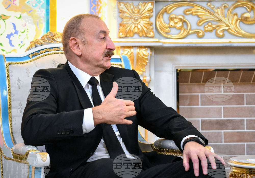 Russian President Vladimir Putin talks with Azerbaijan's President Ilham Aliyev during their meeting on the sidelines of the Russia-Central Asia summit in Dushanbe, Tajikistan, on Thursday, Oct. 9, 2025. (Grigory Sysoyev, Sputnik, Kremlin Pool Photo via AP)