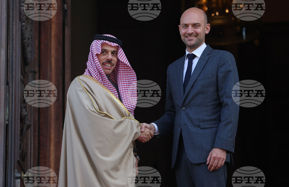Saudi Arabia Foreign Minister Faisal bin Farhan Al-Saud, left, is welcomed by France's outgoing Minister of Foreign Affairs Jean-Noel Barrot for mideast talks with European and Arab countries at the foreign ministry in Paris, France, Thursday, Oct. 9, 2025. (Thomas Samson, Pool Photo via AP)