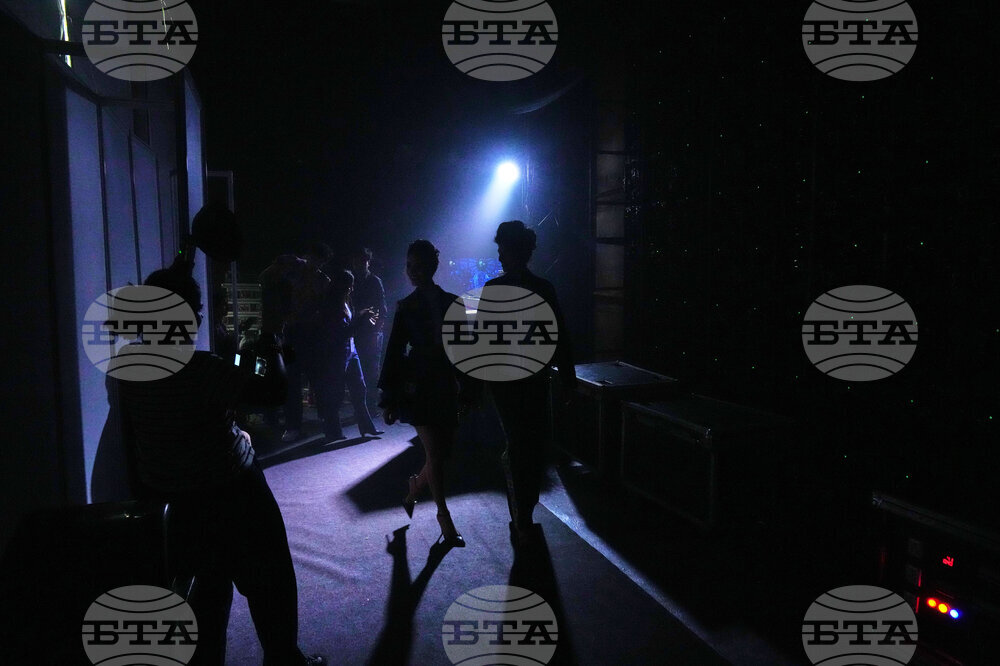 Models return back stage after a show during Lakmé Fashion Week in partnership with Fashion Design Council of India (FDCI) in New Delhi, India, Thursday, Oct. 9, 2025. (AP Photo/Manish Swarup)