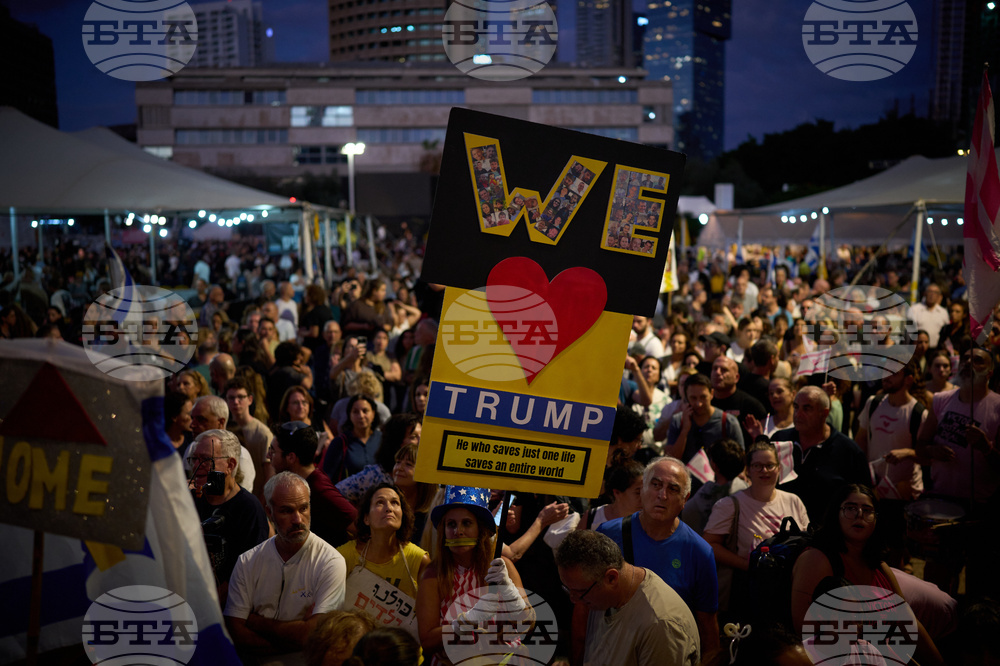 People gather to celebrate following the announcement that Israel and Hamas have agreed to the first phase of a peace plan to pause the fighting, at a plaza known as Hostages Square in Tel Aviv, Israel, Thursday, Oct. 9, 2025. (AP Photo/Emilio Morenatti)