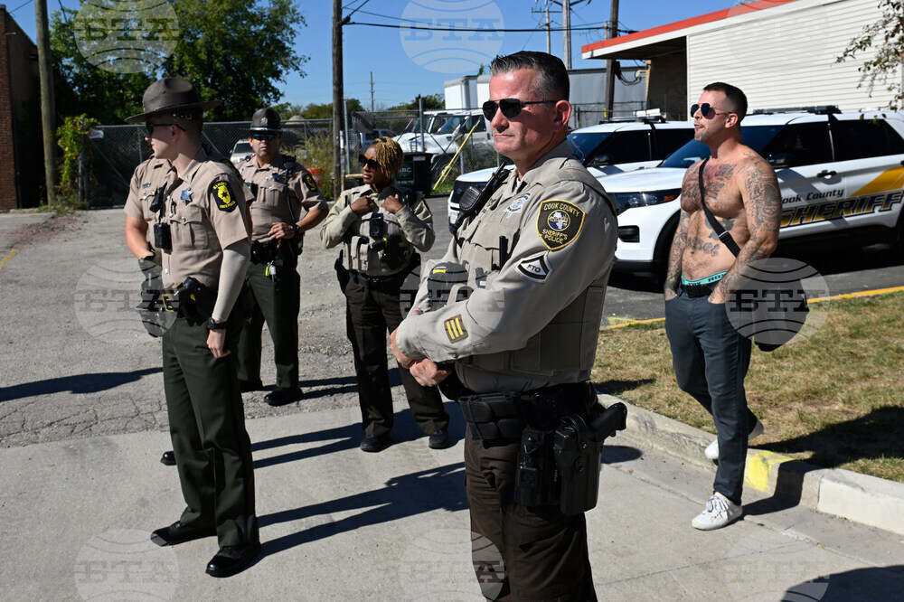 Illinois State troopers guard the immigration processing facility in Broadview, Ill., Thursday, Oct. 9, 2025. (AP Photo/Paul Beaty)