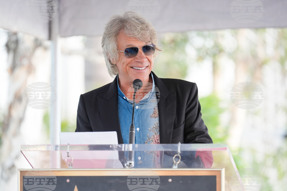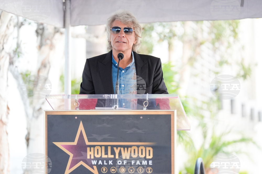 Jon Bon Jovi attends a ceremony honoring Def Leppard with a star on the Hollywood Walk of Fame on Thursday, Oct. 9, 2025, in Los Angeles. (AP Photo/Chris Pizzello)