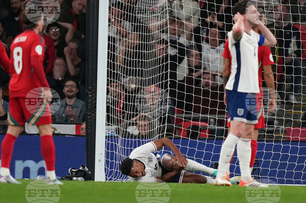 Wales's goalkeeper Karl Darlow fails to save a shot by England's Bukayo Saka, not seen, who scored his side's third goal during an international friendly soccer match between England and Wales at Wembley stadium in London, Thursday, Oct. 9, 2025. (AP Photo/Frank Augstein)