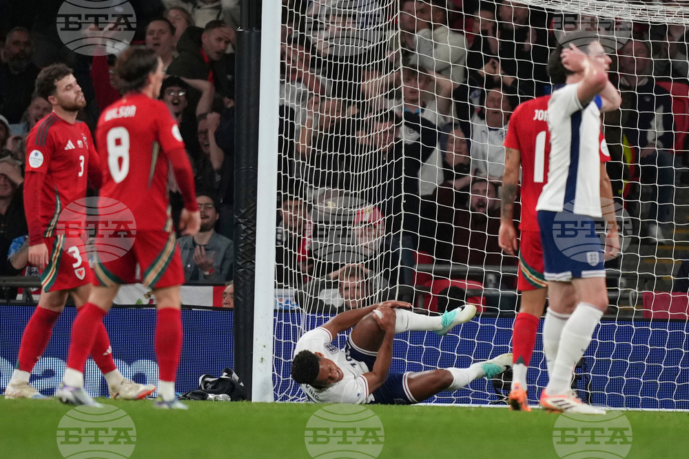 Injured England's Ollie Watkins lays on the ground during an international friendly soccer match between England and Wales at Wembley stadium in London, Thursday, Oct. 9, 2025. (AP Photo/Frank Augstein)