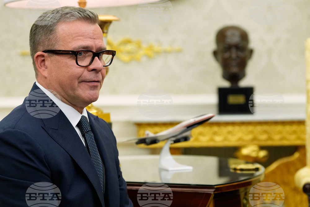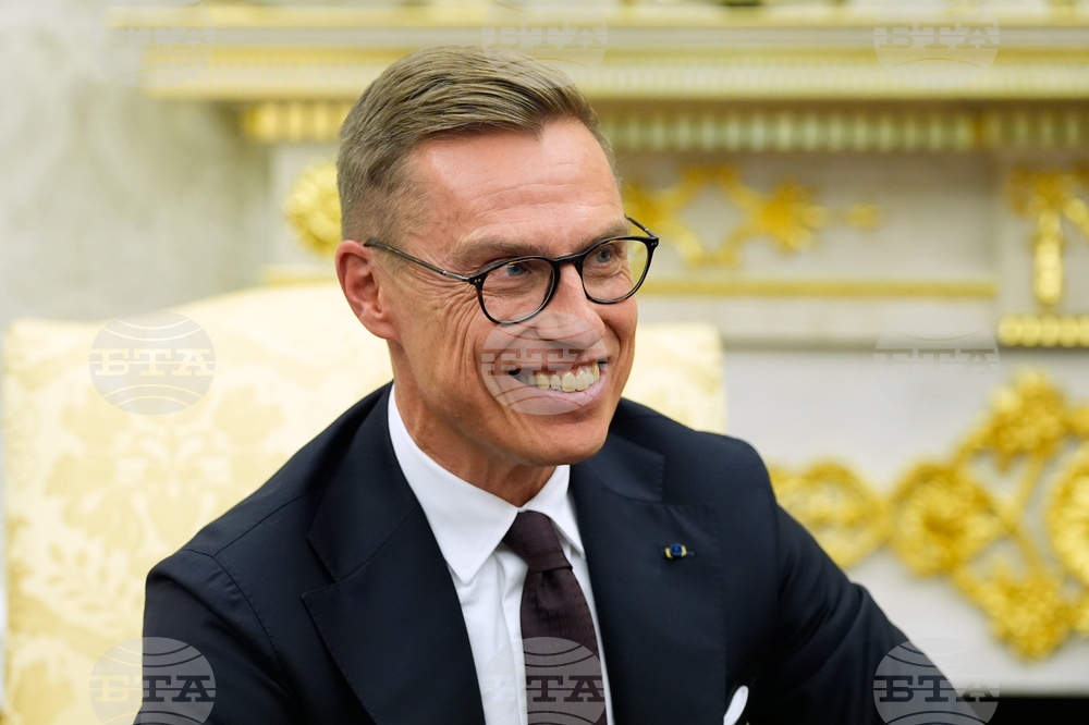 Finland's President Alexander Stubb smiles as he meets with President Donald Trump in the Oval Office at the White House, Thursday, Oct. 9, 2025, in Washington. (AP Photo/Alex Brandon)