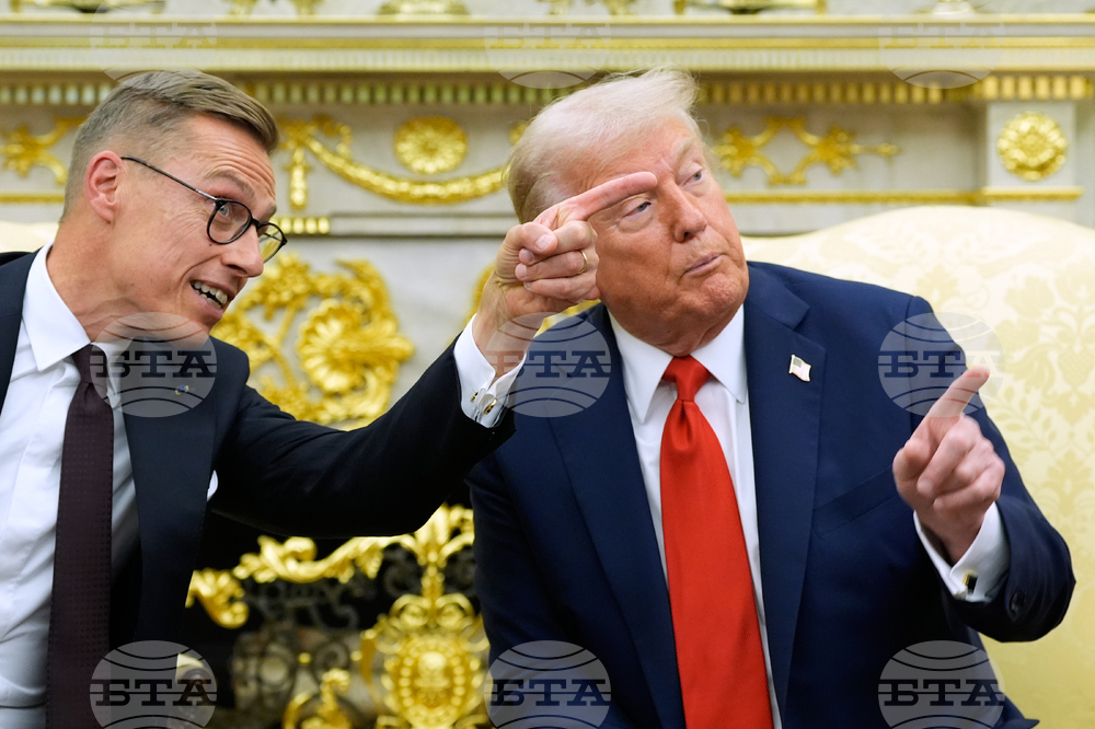 President Donald Trump and Finland's President Alexander Stubb meet in the Oval Office at the White House, Thursday, Oct. 9, 2025, in Washington. (AP Photo/Alex Brandon)