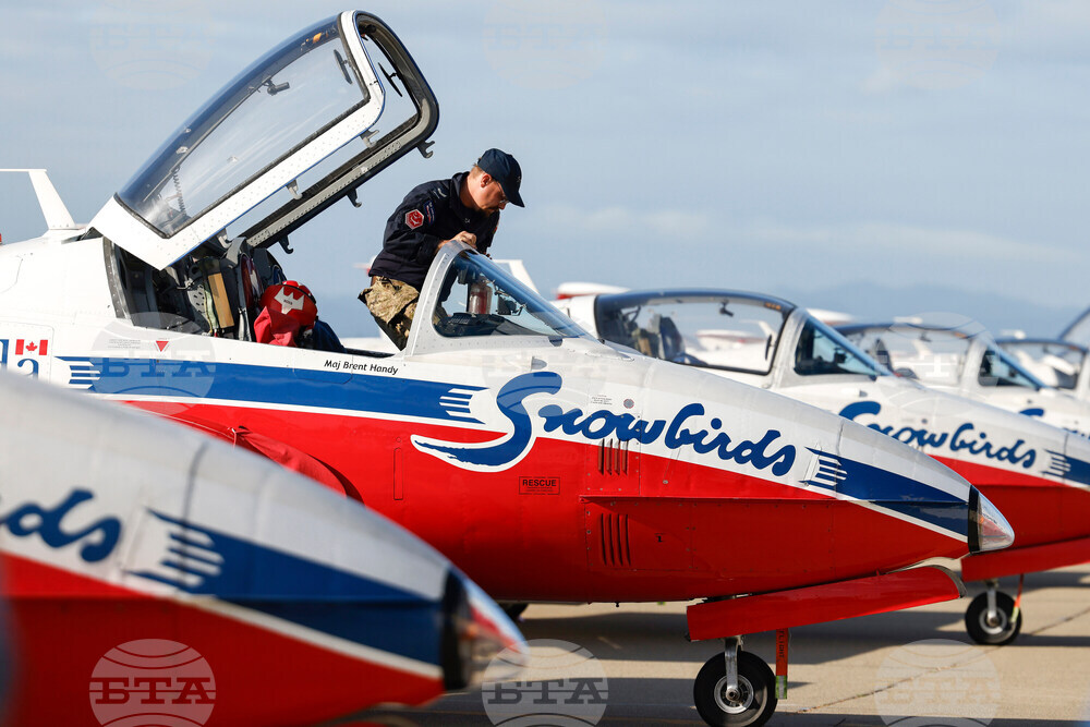 An engineer prepares the Royal Canadian Air Force’s Snowbirds Canadian-built CT-114 Tutor aircrafts for practice near Oakland International Airport in Oakland, Calif., Thursday, Oct. 9, 2025, ahead of the San Francisco Fleet Week Air Show where they will take the place of the Blue Angels amid the recent government shutdown. (Jessica Christian/San Francisco Chronicle via AP)