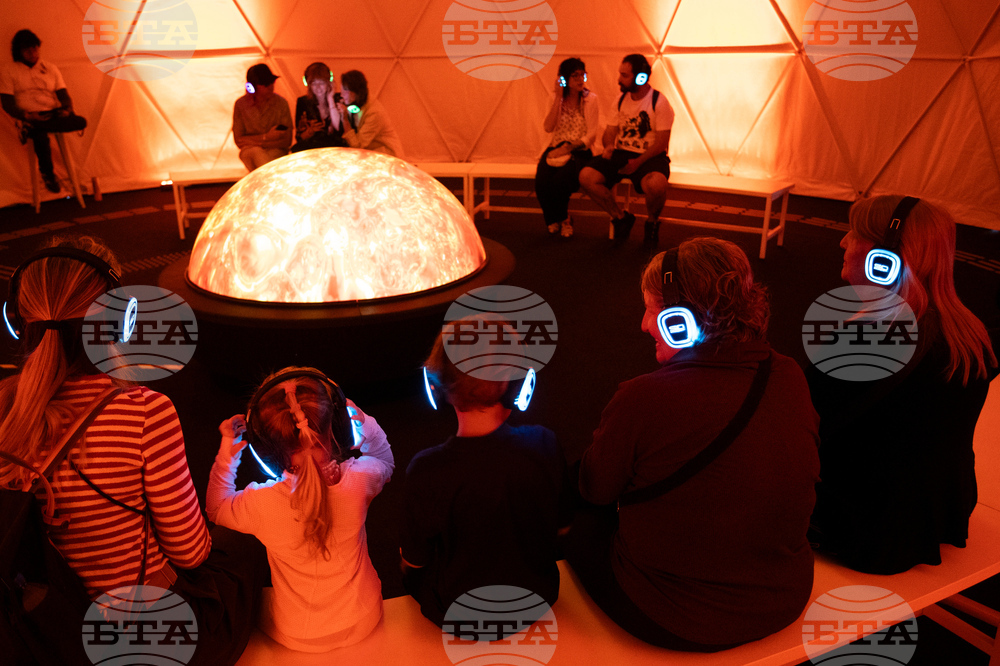 People visit an immersive, multi-sensory installation titled "The Lumisphere Experience" at the Museum of Tomorrow, ahead of COP30, the 30th Conference of the Parties to the UN Framework Convention on Climate Change, in Rio de Janeiro, Thursday, Oct. 9, 2025. (AP Photo/Bruna Prado)