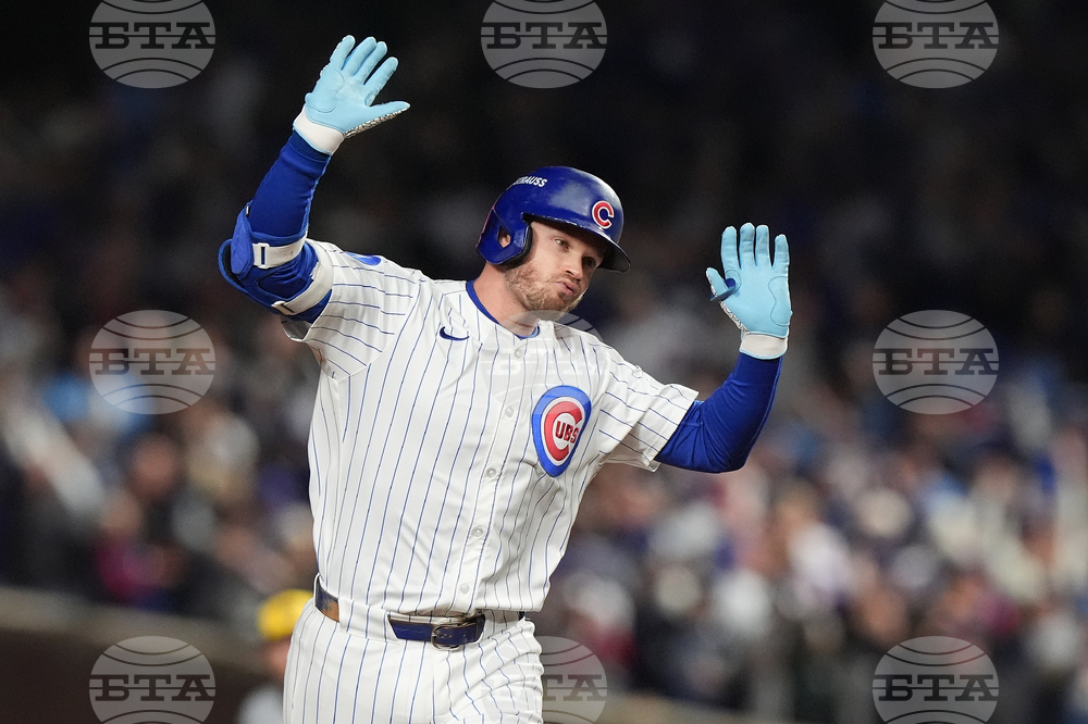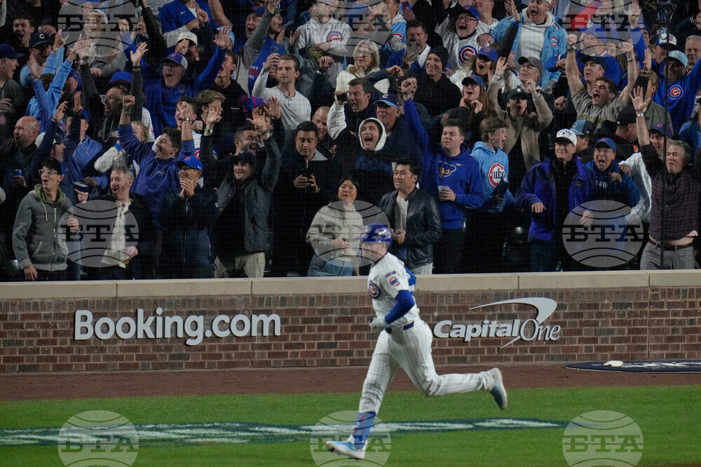 Chicago Cubs' Michael Busch (29) runs the bases after hitting a solo home run during the eighth inning of Game 4 of baseball's National League Division Series against the Milwaukee Brewers Thursday, Oct. 9, 2025, in Chicago. (AP Photo/Nam Y. Huh)