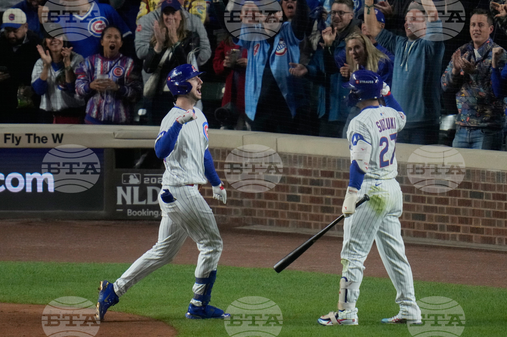 Chicago Cubs fans celebrate after Game 4 of baseball's National League Division against the Milwaukee Brewers Series Thursday, Oct. 9, 2025, in Chicago. (AP Photo/Erin Hooley)