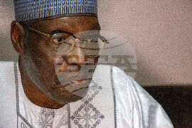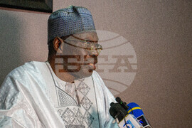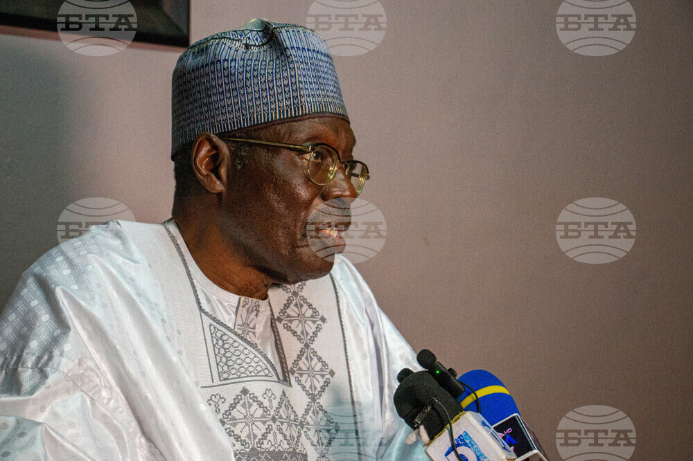 Presidential opposition candidate Issa Tchiroma, speaks to the press in Maroua, Cameroon, Thursday, Oct. 9, 2025. (AP Photo/Welba Yamo Pascal)