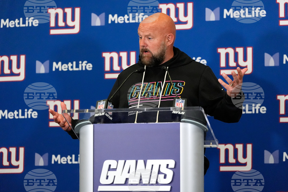 New York Giants' Brian Daboll speaks during a news conference after an NFL football game against the Philadelphia Eagles Thursday, Oct. 9, 2025, in East Rutherford, N.J. (AP Photo/Yuki Iwamura)