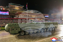 This photo provided by North Korean government shows what it says a new intercontinental ballistic missile called the Hwasong-20, during a military parade marking the 80th anniversary of the founding of the ruling Worker's Party, in Pyongyang, North Korea, Saturday, Oct. 10, 2025. Independent journalists were not given access to cover the event depicted in this image distributed by the North Korean government. The content of this image is as provided and cannot be independently verified. Korean language watermark on image as provided by source reads: "KCNA" which is the abbreviation for Korean Central News Agency. (Korean Central News Agency/Korea News Service via AP)