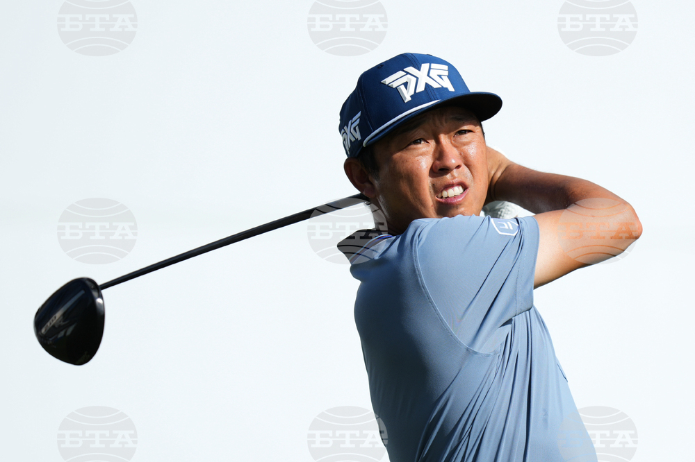 CORRECTS TO TOM KIM, NOT RILEY - Tom Kim of the U.S. tees off on the first hole during the second round of the Baycurrent Classic golf tournament at the Yokohama Country Club in Yokohama, near Tokyo, Friday, Oct. 10, 2025. (AP Photo/Hiro Komae)
