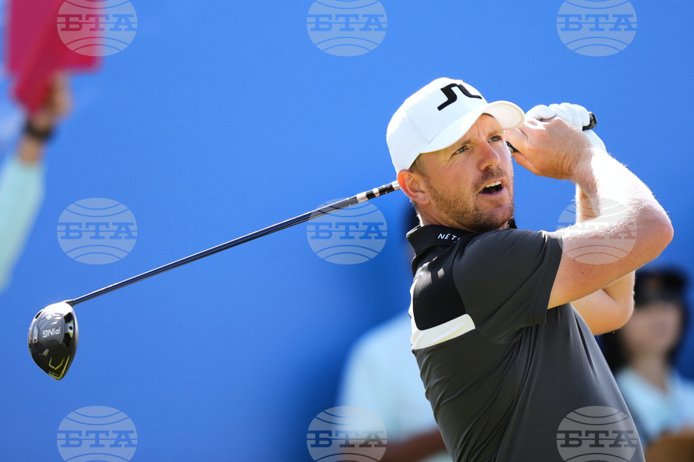Matt Wallace of England tees off on the 10th hole during the second round of the Baycurrent Classic golf tournament at the Yokohama Country Club in Yokohama, near Tokyo, Friday, Oct. 10, 2025. (AP Photo/Hiro Komae)