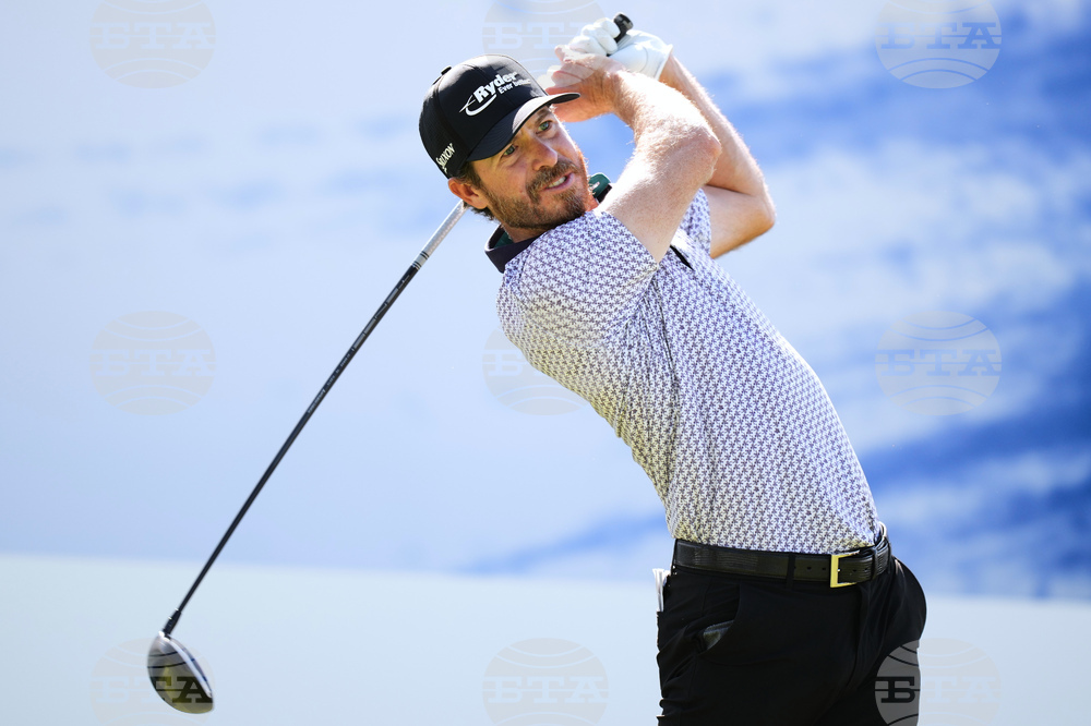 Brian Campbell of the U.S. tees off on the first hole during the second round of the Baycurrent Classic golf tournament at the Yokohama Country Club in Yokohama, near Tokyo, Friday, Oct. 10, 2025. (AP Photo/Hiro Komae)