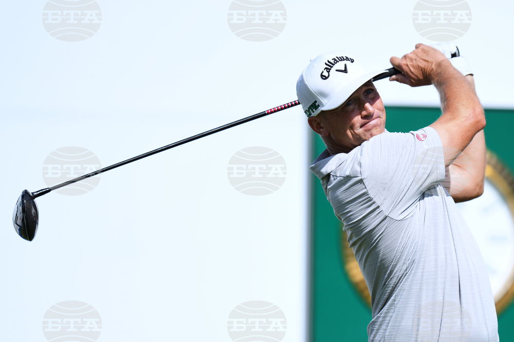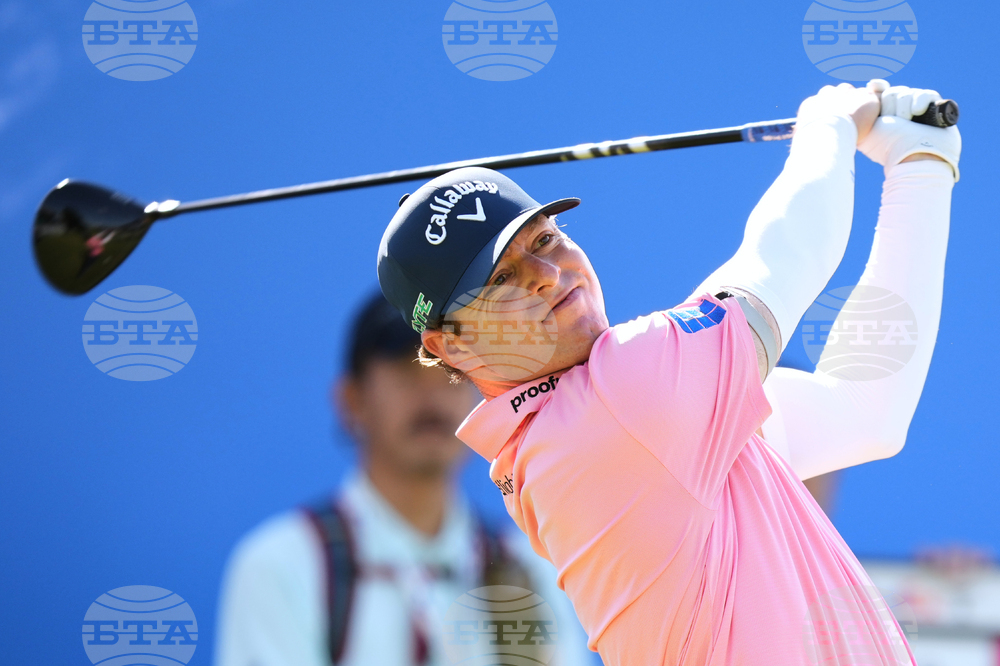 Kevin Roy of the U.S. tees off on the first hole during the second round of the Baycurrent Classic golf tournament at the Yokohama Country Club in Yokohama, near Tokyo, Friday, Oct. 10, 2025. (AP Photo/Hiro Komae)