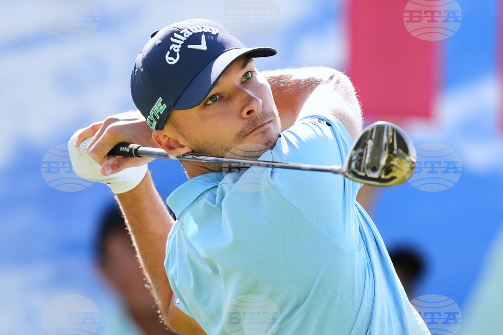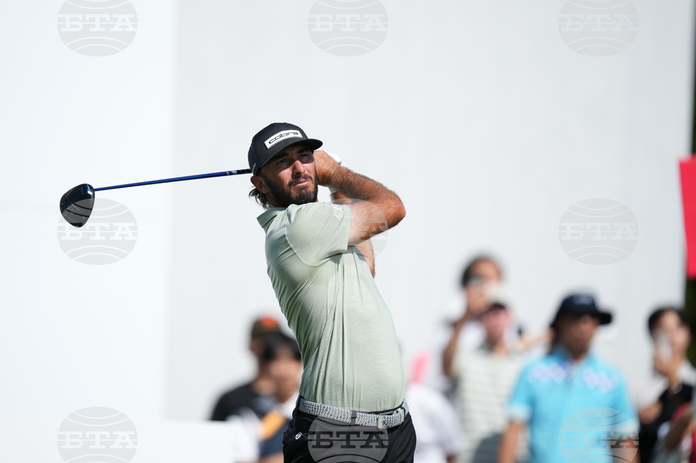 Lee Hodges of the U.S. tees off on the first hole during the second round of the Baycurrent Classic golf tournament at the Yokohama Country Club in Yokohama, near Tokyo, Friday, Oct. 10, 2025. (AP Photo/Hiro Komae)