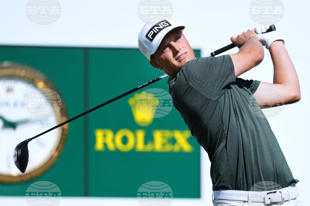 William Mouw of the U.S. tees off on the 1st hole during the second round of the Baycurrent Classic golf tournament at the Yokohama Country Club in Yokohama, near Tokyo, Friday, Oct. 10, 2025. (AP Photo/Hiro Komae)