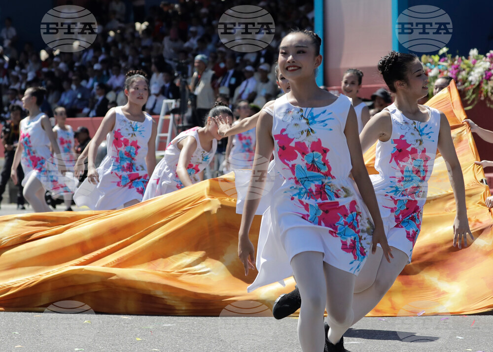 Dancers perform during National Day celebrations in front of the Presidential Building in Taipei, Taiwan, Friday, Oct. 10, 2025. (AP Photo/Chiang Ying-ying)