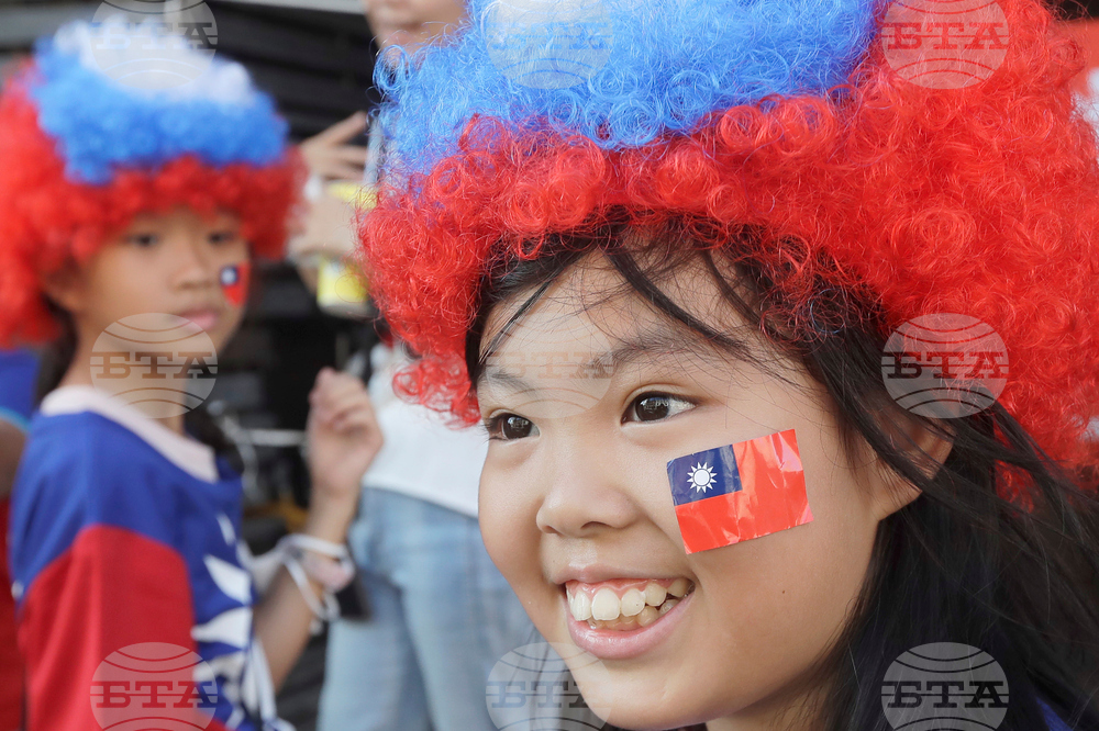 A girl shows a national flag on her face during National Day celebrations in front of the Presidential Building in Taipei, Taiwan, Friday, Oct. 10, 2025. (AP Photo/Chiang Ying-ying)