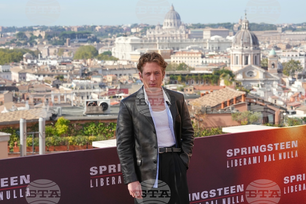 Jeremy Allen White poses for photographers at the photo call for the movie "Springsteen: Deliver Me from Nowhere", in Rome, Friday, Oct. 10, 2025. (AP Photo/Andrew Medichini)