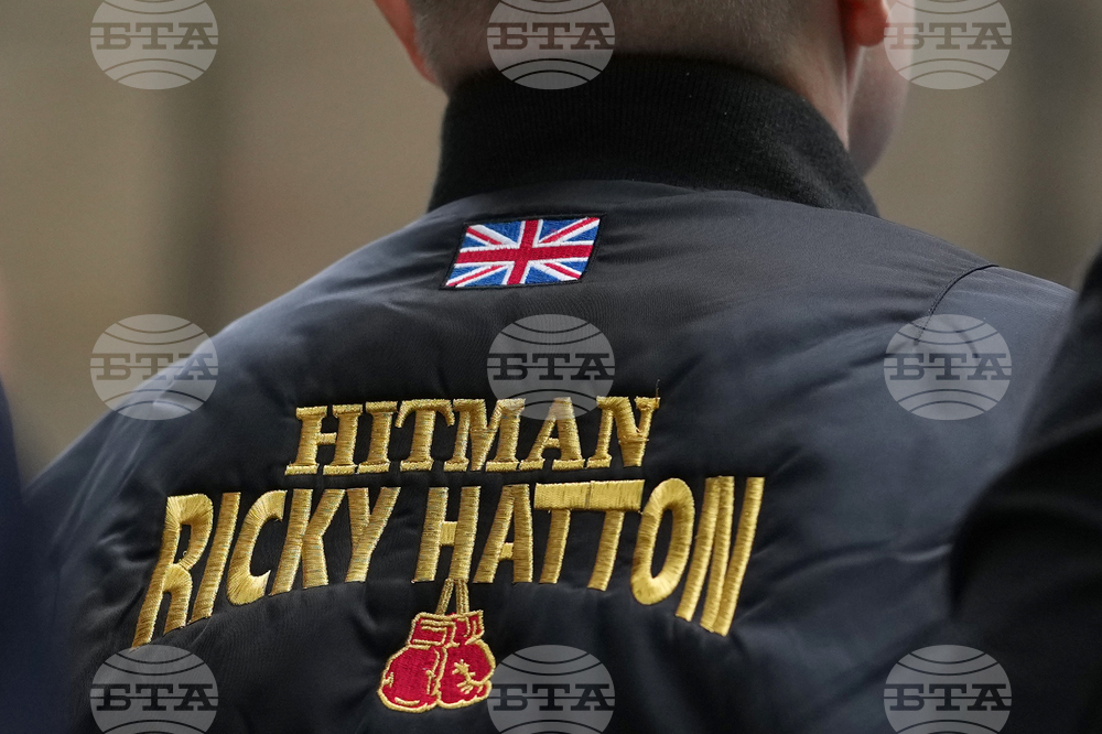 A fan wears a jacket embroidered with boxer Ricky Hatton's name and nickname 'Hitman" during the funeral for the boxer at Manchester Cathedral, in Manchester, England, Friday, Oct. 10, 2025. (AP Photo/Jon Super)