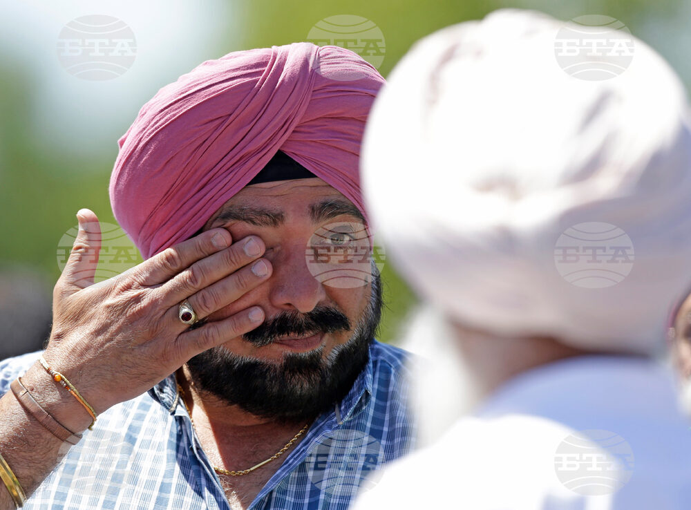 FILE - A man wipes away tears outside the Sikh Temple in Oak Creek, Wis. where a shooting took place on Sunday, Aug 5, 2012. (AP Photo/Jeffrey Phelps, File)