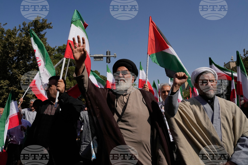 Iranian worshippers wave Iranian and Palestinian flags during an anti-Israeli rally after their Friday prayers at the Enqelab-e-Eslami (Islamic Revolution) square, in Tehran, Iran, Friday, Oct. 10, 2025. (AP Photo/Vahid Salemi)