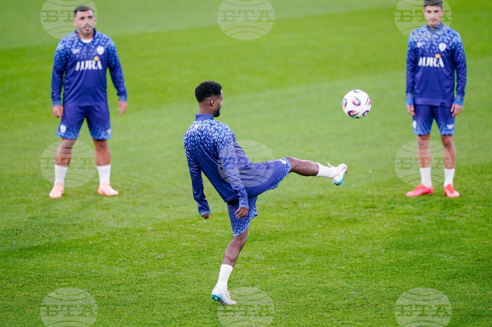 Israel national soccer team attend a training session in Oslo, Friday Oct. 10, 2025, before the World Cup qualifying soccer match between Norway and Israel on Saturday. (Jonas Been Henriksen/NTB via AP)